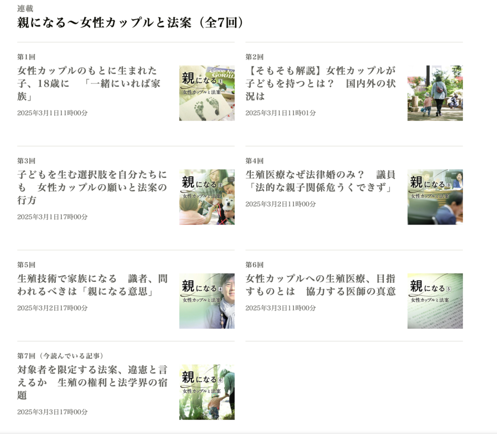 朝日新聞「親になる~女性カップルと法案」全7回の取材協力しました・